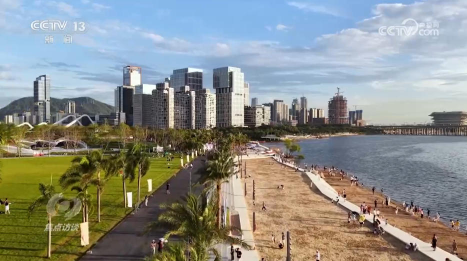 大海、沙滩,骑行、美美地拍照……今年8月,深圳前海石公园的桂湾段刚刚建成开放,也迅速成为年轻人热衷打卡的新地标。作为大型滨海公园群,这里有12公里海岸线和充满设计感的景观布局。周边商务楼里的年轻人很喜欢来吹吹海风,坐在沙滩椅上放空,这是他们最直接的“解压方式”。而一个刚建成的人工沙滩是小朋友们最喜欢的游乐园。