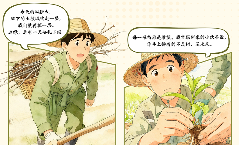 【我在老区“种”青春· AI漫画】黄土高原的“绿色长城”