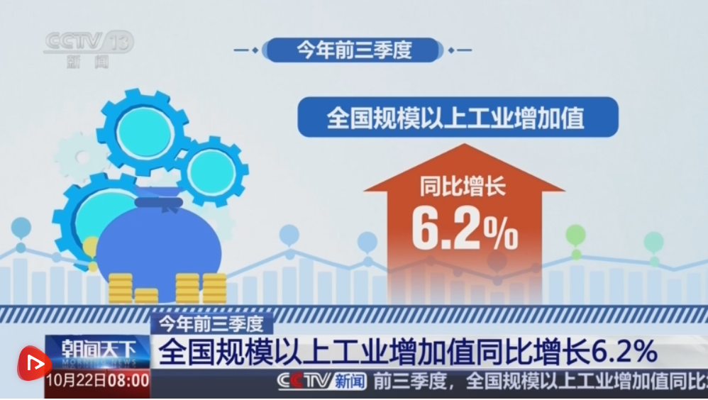 今年前三季度,全国规模以上工业增加值同比增长6.2%。在更加积极有为的宏观政策促进下,我国工业生产实现较快增长,工业经济呈现稳中有进的发展态势。