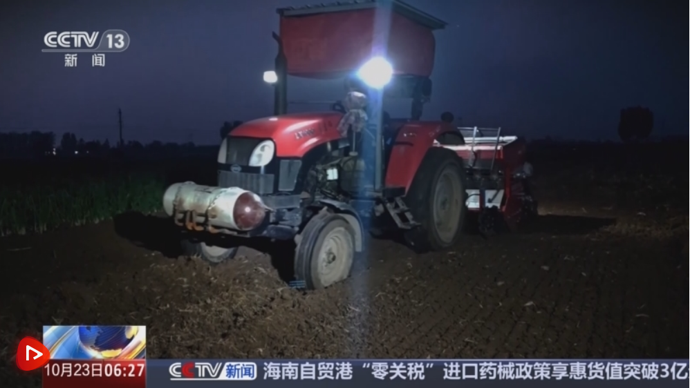 在安阳市老店镇,当地的耕地目前达到了小麦播种条件,农机手操作精量播种机不停作业,抓紧时间进行播种。