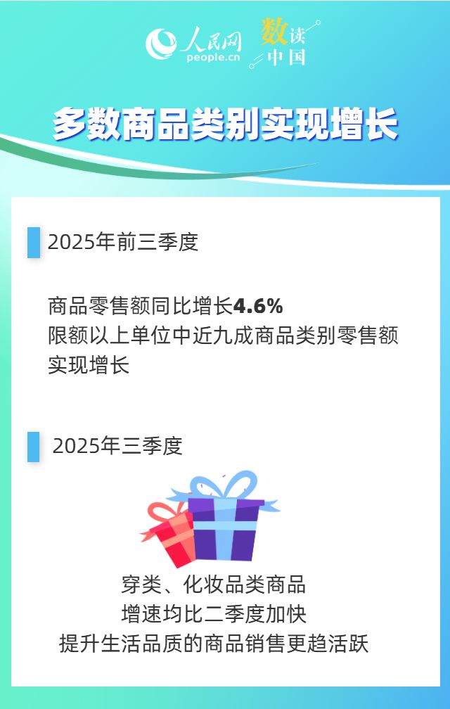 今年前三季度,以旧换新等提振消费系列政策措施落地见效,消费新业态、新模式、新场景不断拓展,各类新型消费较快发展。商品和服务供给持续优化,消费需求稳步释放,消费市场扩容提质。透过几组数据,一起感受消费“购物车”中的市场活力。