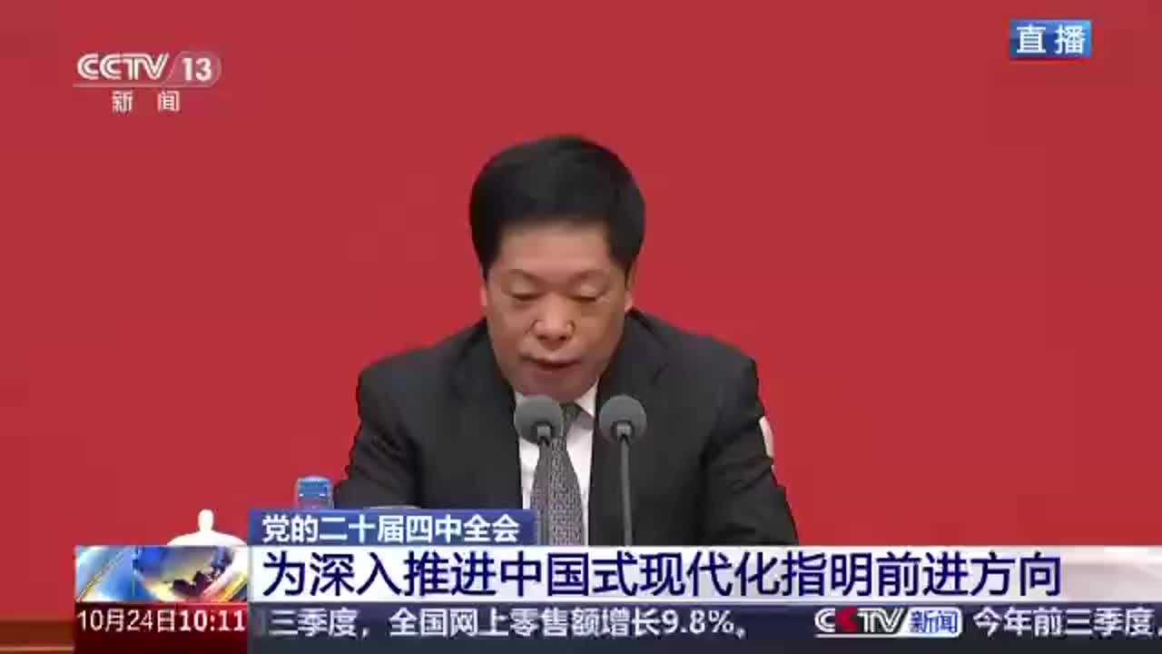 中共中央今天(24日)上午举行新闻发布会,介绍和解读党的二十届四中全会精神。