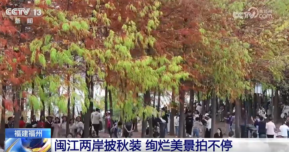 入秋以来,福建福州的栾树、红杉等植物陆续披上金红“秋装”,不少市民和游客来到闽江两岸,感受这份属于秋季的浪漫。