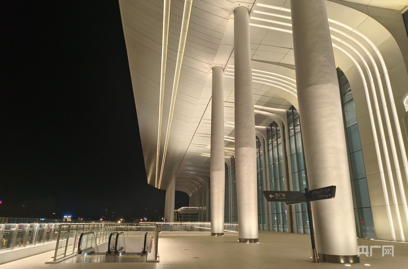 东广场上,汕头站全貌尽收眼底。“海丝腾飞、潮立汕头”的设计立意贯穿始终,22根最高约23米的“海浪柱”搭配“海浪”造型檐口吊顶,呈现“海潮奔涌”的壮阔景象;正面柱廊设计理念源自岭南骑楼,尽显传统建筑文化与开放包容的城市精神。