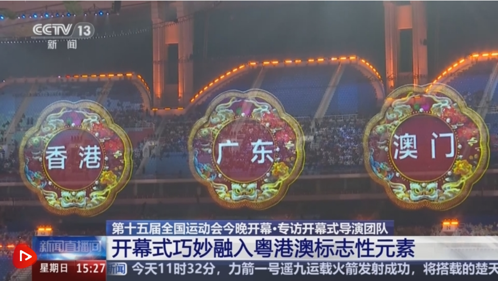 作为首次由粤港澳三地联合承办的全国运动会,十五运会开幕式巧妙融入香港维多利亚港、澳门大三巴、广州“小蛮腰”等标志性元素,展现粤港澳大湾区互联互通的蓬勃生机。十五运会开幕式总监制刘伟强介绍,粤港澳有很多共通的元素,划龙舟的端午节也是一样,中秋节也是一样,从小看黄飞鸿、叶问这些。
