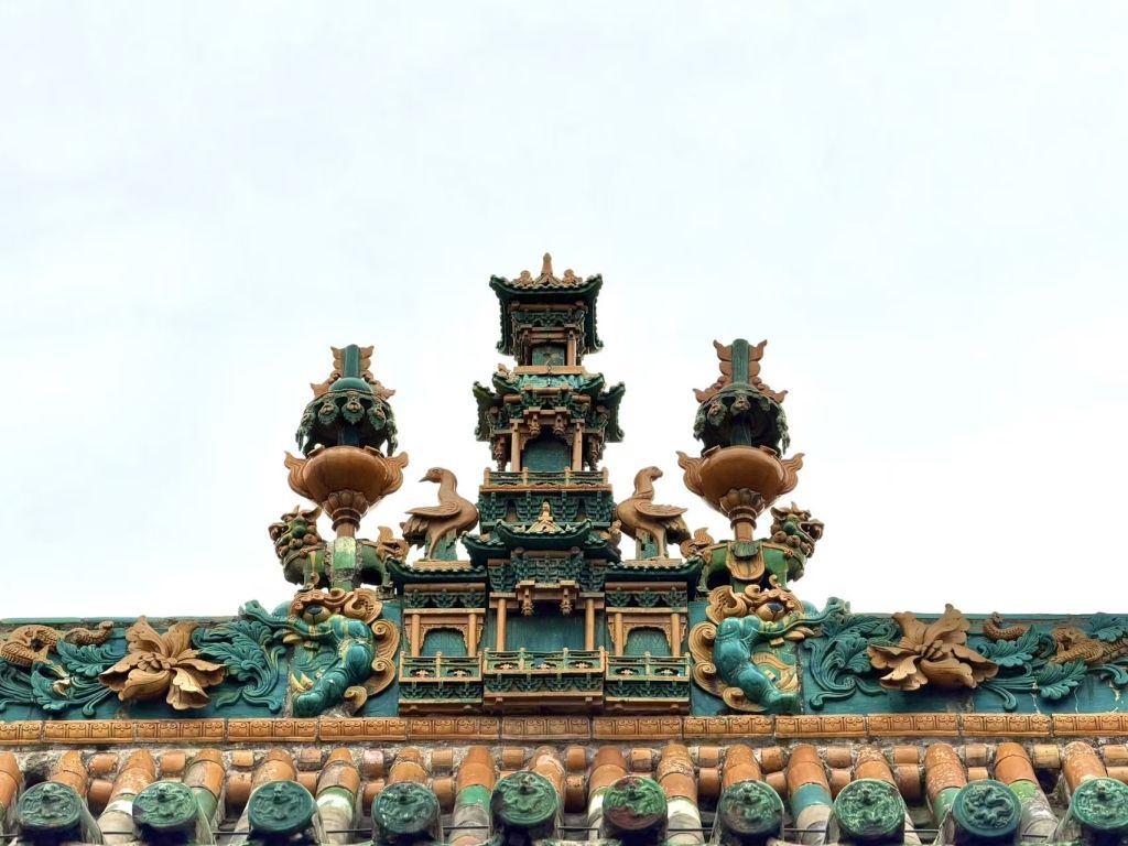 介休厚土庙用琉璃制作复杂的屋顶建筑。 澎湃新闻记者 王珏玮 图
