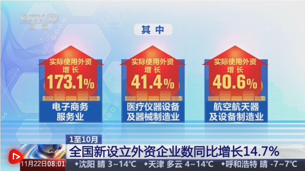 商务部最新数据显示,今年1至10月,全国新设立外商投资企业53782家,同比增长14.7%。