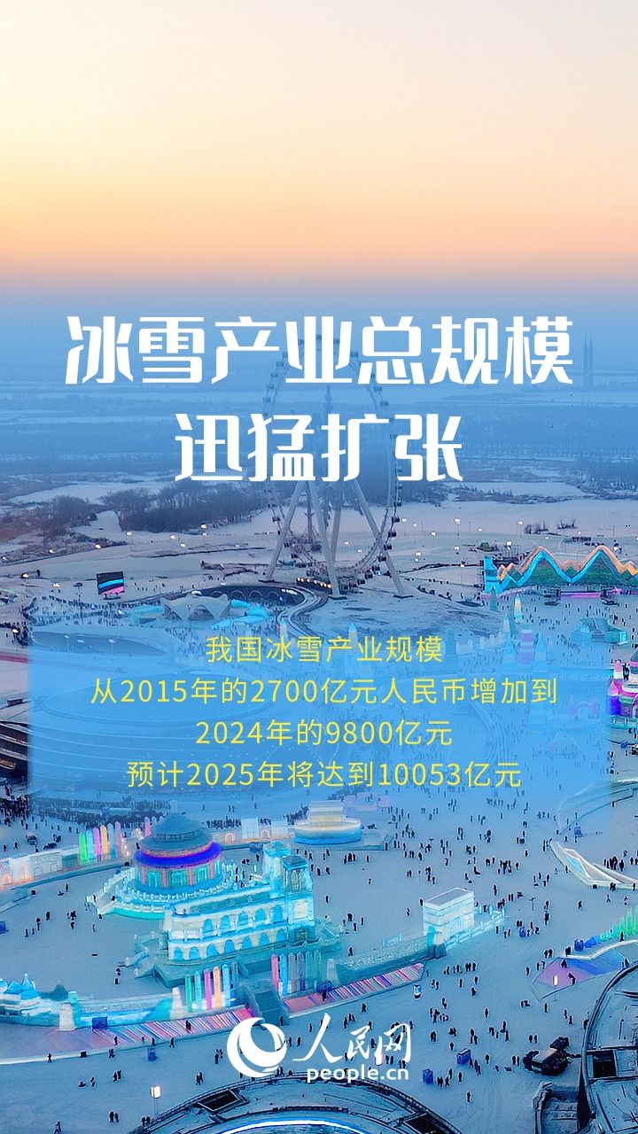 近日,在2025国际冬季运动博览会主论坛上发布的《中国冰雪产业发展研究报告(2025)》显示,今年我国冰雪产业规模将突破万亿元大关,达10053亿元。这一数字标志着冰雪经济成为我国经济发展中不容忽视的新兴力量。目前,我国冰雪运动消费群体持续扩容,为产业高质量发展注入了强劲内生动力。一组海报带你了解我国冰雪产业万亿新量级的发展新图景。
