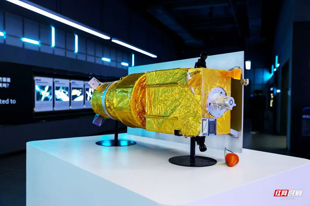 在湖南株洲北斗产业园的展厅内,一颗通体金黄的卫星模型静静地反射着灯光,多层隔热材料包裹的机身闪烁着金属光泽。