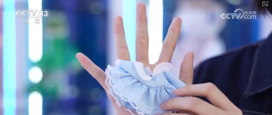 某纺织科技有限公司董事长胡鸣一表示,未来,他们在“娃衣”基础上再做一些娃娃的配饰,像这种绒花跟缠花的,作为一些娃娃的配饰。其实,小娃娃“大市场”,未来的市场前景非常大。