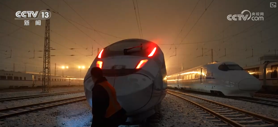 12月12日,京津冀地区迎来今冬首场大范围降雪。为确保动车组列车在低温环境下运行状态良好,国铁北京局连夜开展防寒加温作业。工作人员在零下5℃的环境中,为动车组启动空调系统,提升车厢温度,防止车内设备、水管等因低温冻结,保障动车组列车第二天安全正点出发。