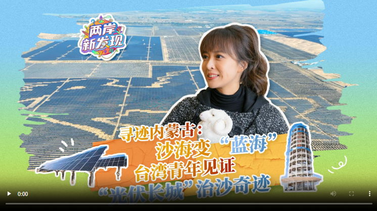 两岸新发现,内蒙古新体验!在内蒙古自治区鄂尔多斯市达拉特旗光伏领跑者基地,一片片蓝色的光伏板如海洋般铺展,构成了一道阻沙固土的“光伏长城”,实现了沙漠增绿、产业升级、富农增收,成为黄河“几字弯”生态治理、经济发展的坚实屏障。台湾青年演员姬天语将带你走进“光伏长城”防沙治沙新场景,见证“光伏+治沙”模式推进荒漠化治理的奇迹。