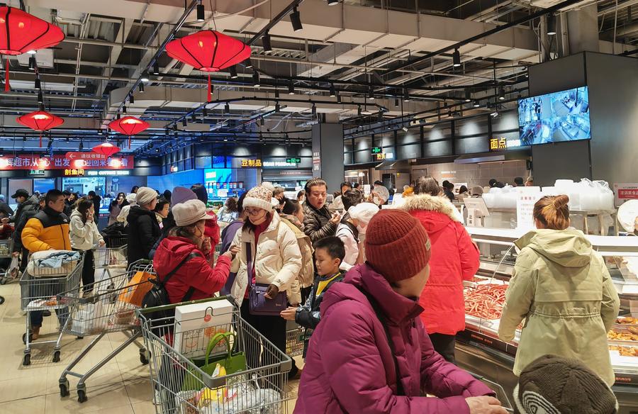People shop at a supermarket in Shijingshan District in Beijing, capital of China, Feb. 8, 2025. (Photo: Xinhua)