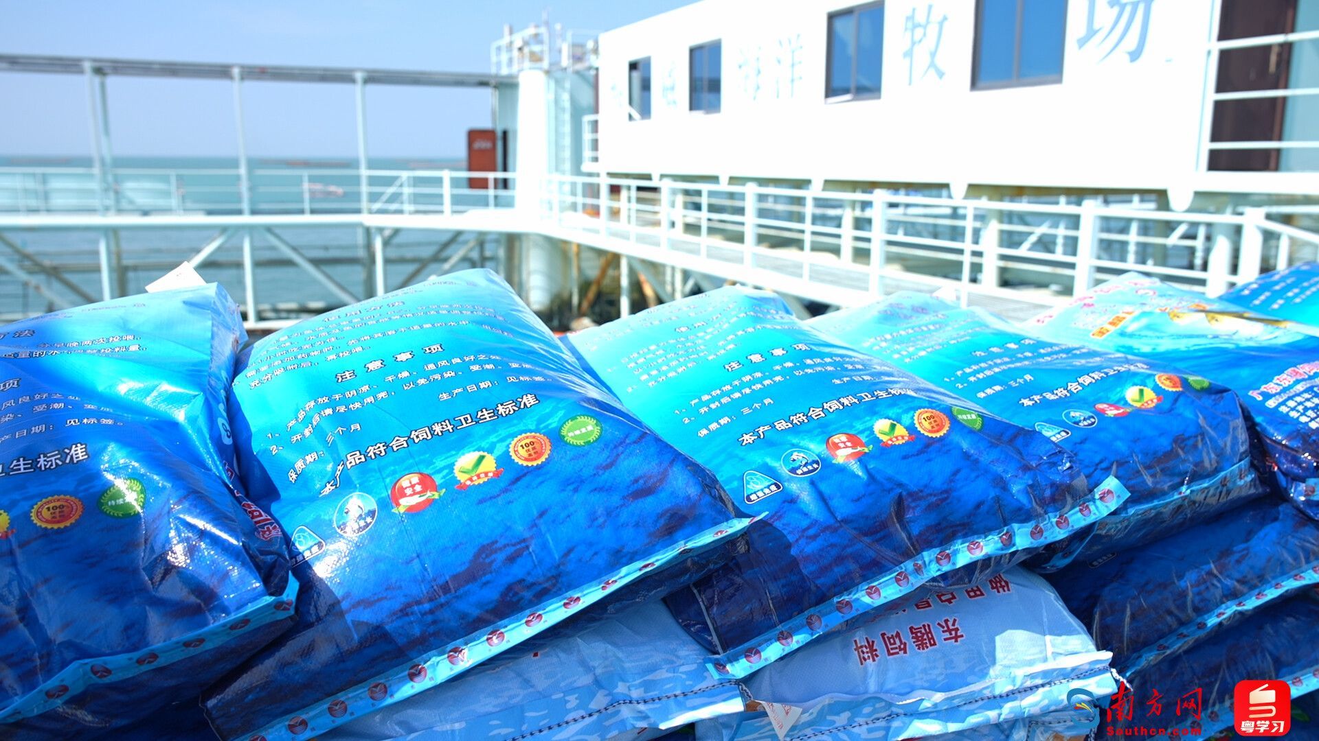 饲料一次性运送到平台上,可以免去多次转运的麻烦。