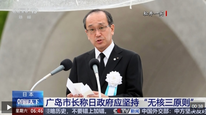 日本广岛市市长松井一实26日表示,“日本政府应明确,不会受到个人观点左右并将坚持‘无核三原则’的立场”。松井一实强调,“无核三原则”是国家方针、不可动摇。