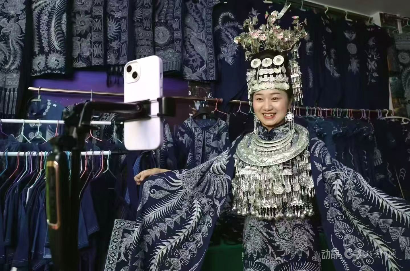 如今的刘勤兰,在短视频平台上,忙着直播展示店里的民族服饰,在“村超”球场上,她依然是穿着百鸟衣,银饰叮当响的那个“显眼包”。“我现在努力提升自己的英语水平,希望将来有一天能够把我的作品带到国外去。”