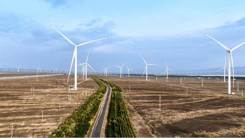 达坂城,地处新疆乌鲁木齐市,被誉为“中国风谷”,是新疆风能资源最好的地区之一。广袤的原野上,一座座“大风车”矗立如林,塔筒高110米,叶片长93米,高度总计近70层楼。风机转动1小时能发6700度电,足够供一个家庭三年用电。