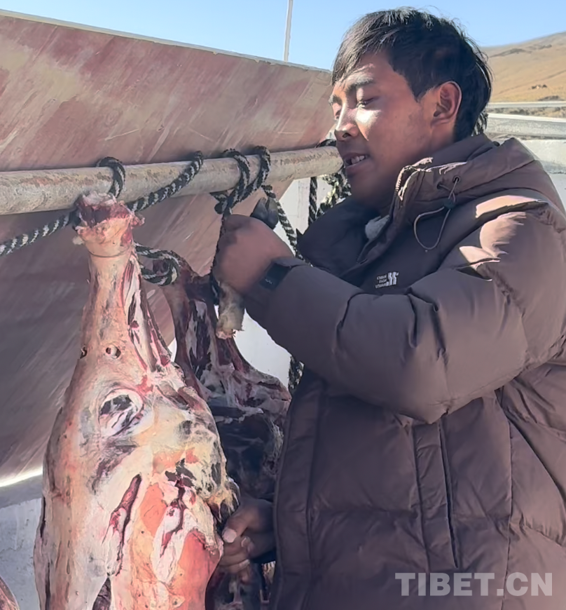 在定日县长所乡古荣村,村民罗布正在新房前晾晒风干羊肉。“这将是我们在新家过的第一个年,”他说,“希望一年比一年好。”风干羊肉的香气在冬日的空气中飘散,炊烟从崭新的屋顶升起,处处洋溢着即将到来的日喀则农事新年的味道。