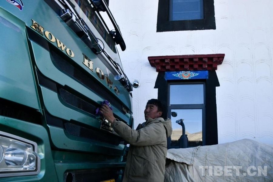 图为旦增杰布正在新家前擦拭自己的新车 摄影:赵振宇