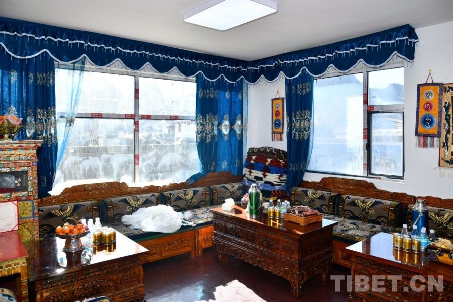他的妻子次仁拉宗坐在门前编织毛线,谈及新家,她有说不完的话。“这个新家我们装修花了3万多元,家具都是从定日县城买的,也有一些是从旧家里搬出来的,等过完这个年我们还想着把现在的大白墙再装饰一下。”在旦增的家里,墙面挂满了孩子们的奖状,三个孩子中,大女儿在西藏大学读书,二女儿读高一,最小的孩子即将进入幼儿园。