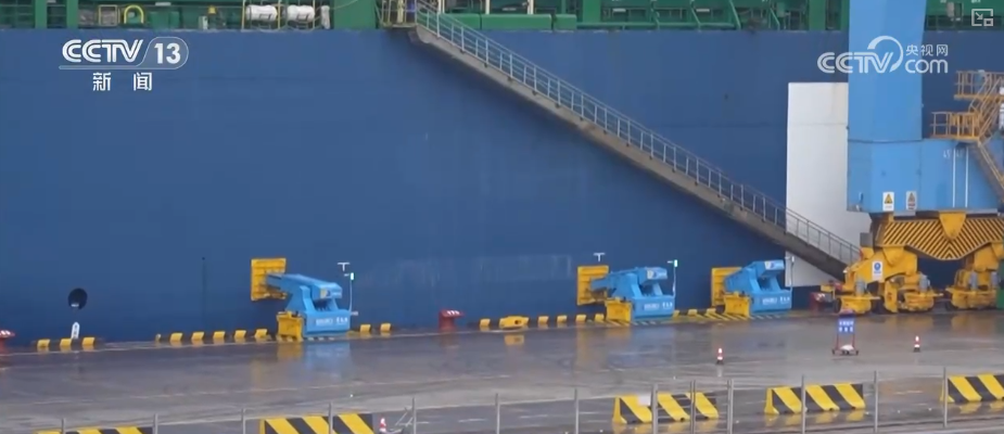 在现场这个泊位上一排特别的装置吸引了记者的注意,它是干什么用的?与传统作业方式不同,码头上几乎看不到工作人员挂靠缆绳,而且整个靠港过程也非常快速高效。