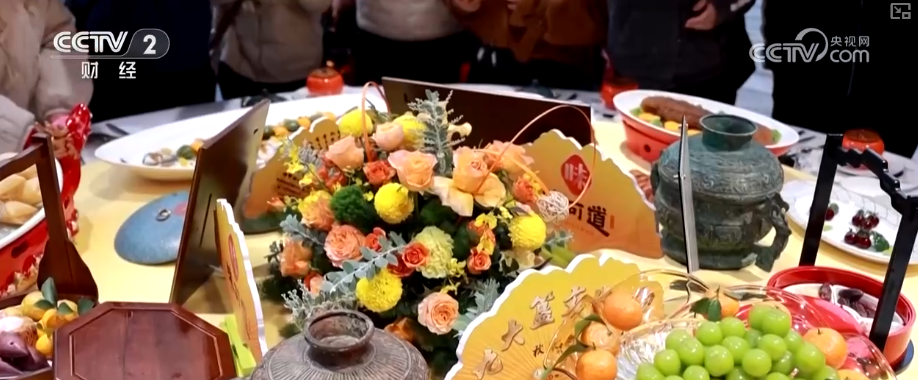 吉市一开,热气腾腾的年味便扑面而来。美食区里,寓意“团团圆圆”的盆菜礼盒、丰盛的九大簋,这些承载着记忆的传统佳肴率先吸引食客目光。