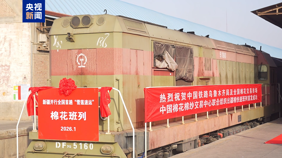 1月26日,随着一列满载1395吨棉花的“雪莲速运”棉花班列从新疆阿克苏站鸣笛启程,前往山东滨州市小营站,标志着全国首趟棉花快速班列顺利开行,为推动新疆棉花棉纱产业发展、助力乡村振兴注入新动能。