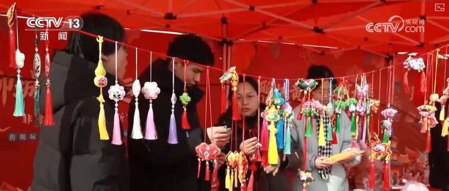 在聊城东昌府区,黄河·运河大集上人头攒动。红彤彤的春联福字、琳琅满目的特色礼盒、各式各样的新年挂饰,一应俱全。