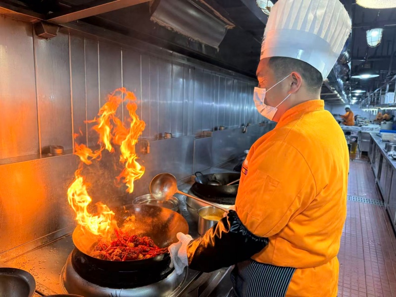 厨师正在烹饪油焖大虾。人民网记者 张隽摄
