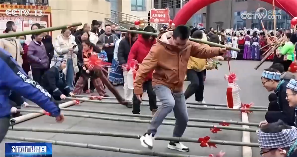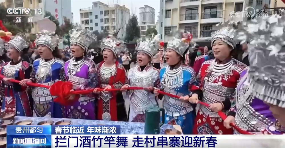 贵州都匀:拦门酒竹竿舞 走村串寨迎新春