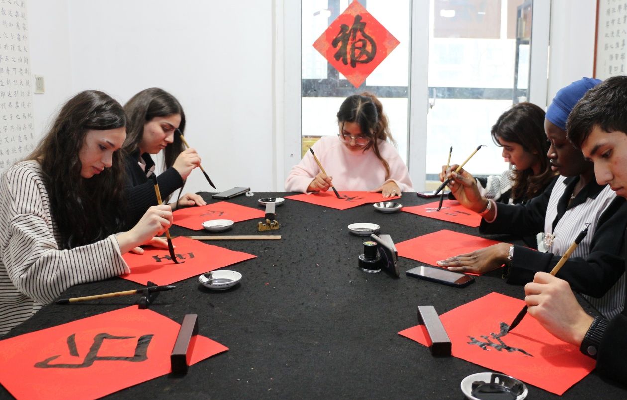 书法本身,就是中国文化极具代表性的表达方式之一。从横竖撇捺中,留学生们触摸到的不只是汉字结构,更是含蓄内敛、和合共生的东方审美气质和精神气象。当“福”字在宣纸上铺展,他们不止写下对春节的祝福,也是在书写对中华文化的理解与认同。