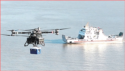 物资流转保通畅 无人机在浙江宁波市象山石浦渔人码头配送鲜活海产及快递包裹。窦 皓 任梦婕摄影报道