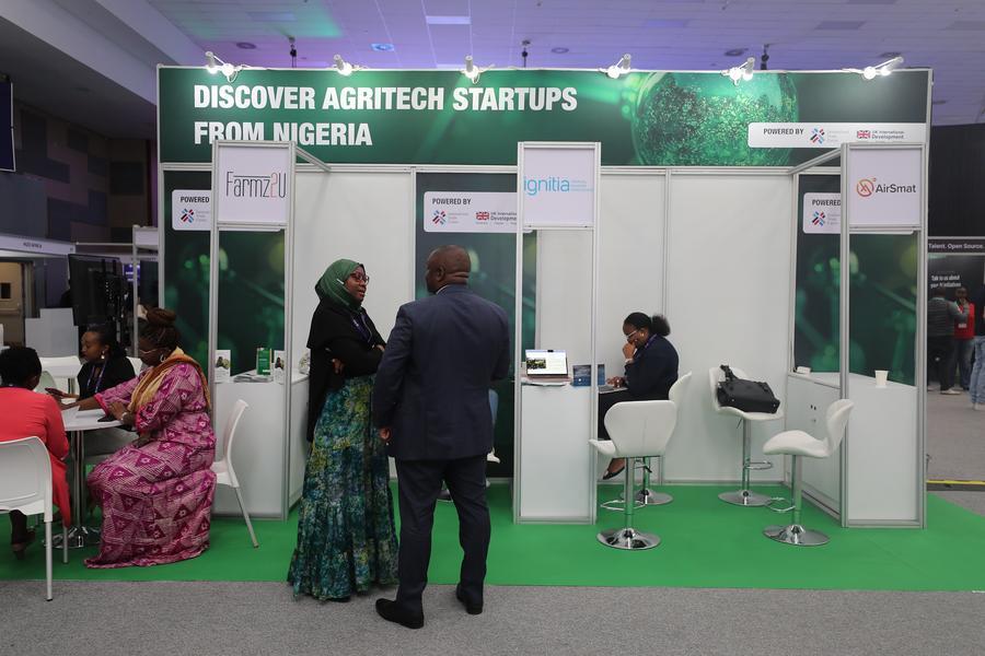 Exhibitors attend to visitors at their booths during the Africa Tech Summit in Nairobi, Kenya, Feb. 11, 2026. (Photo by Henry Naminde/Xinhua)
