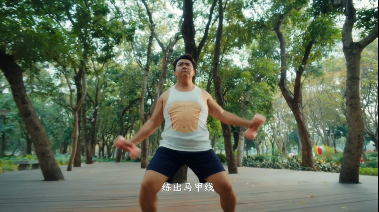 女孩儿扎起高高的马尾辫,迎着风一路小跑,憨憨的胖男孩套着件印有“马甲线”的搞笑背心,假装严肃地举着哑铃。两人对视一眼,都噗嗤笑出声来,原来所谓的“自律”,也可以是一场不谋而合的快乐共谋。