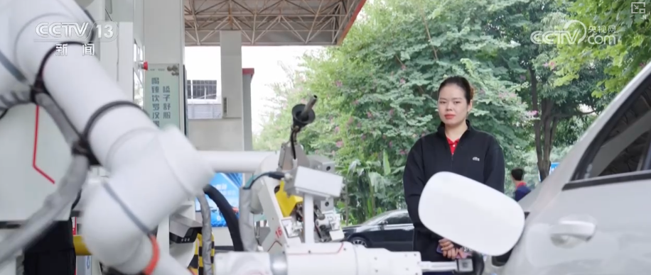 在广西南宁新阳综合加能站,记者看到了我国自主研发的第四代加油人。车主只需通过现场的智能显示器,选择油品型号,机器人便会自动启动全流程智能服务。3D视觉系统精准识别车辆型号与油箱位置,机械臂灵活开启油箱盖、抓取油枪、精准加注,全程仅需120秒即可完成加油。加能站里的AI数字人则成为“全能引导员”,为旅客提供导航查询、充电咨询、路况播报等“一站式”服务。