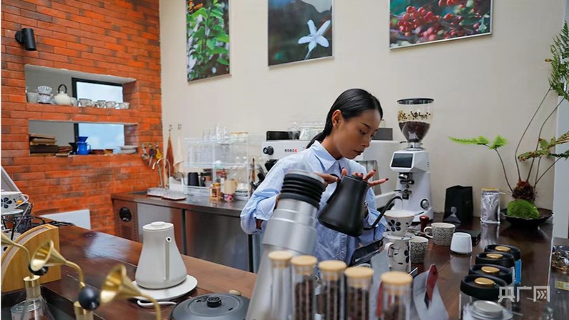现在的咖啡不仅是杯中饮品,更成了文旅场景。山顶咖啡馆、科普长廊与周边的翁丁原始部落联动,形成“以咖促旅、以旅兴咖”的闭环。来自班考村的佤族青年周开艳,不再外出务工,而是在家乡成为了一位专业咖啡师。她开心地说:“离家近了,收入多了,这就是我向往的生活。”