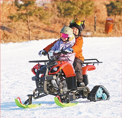 休闲娱乐 游客在河北唐山市玉田县唐自头镇一家滑雪场体验雪地摩托。 姚文海摄(人民视觉)
