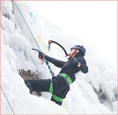 冰雪运动 攀冰爱好者在青海西宁市湟源县大黑沟旅游景区攀冰场内攀冰。 新华社记者 张 龙摄