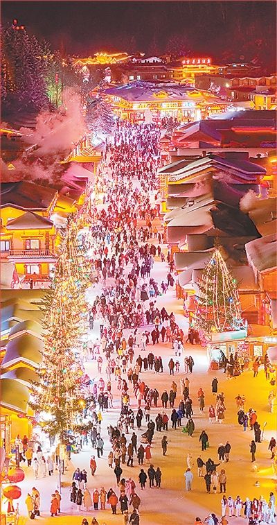 旅游观光 近年来,黑龙江海林市通过业态升级、文旅融合与品牌创新,持续激活“冷资源”潜力。图为游客在“中国雪乡”景区游玩。 唐守弘摄(影像中国)