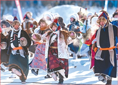 文化演出 演员在第二十一届内蒙古自治区冰雪那达慕开幕式上表演。 王 正摄(人民视觉)