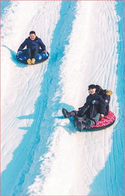 休闲娱乐 游客在江苏宿迁市泗洪县青阳街道游乐园体验冰雪项目。 周 鹏摄(人民视觉)