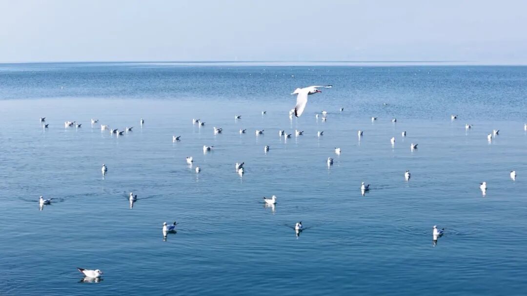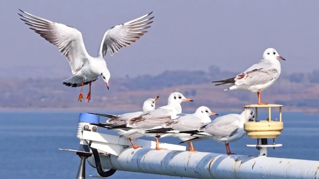 海鸥与中华秋沙鸭同栖共舞