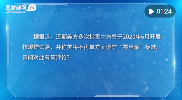记者:据报道,近期美方多次指责中方曾于2020年6月开展核爆炸试验,并称美将不再单方面遵守“零当量”标准。请问对此有何评论?