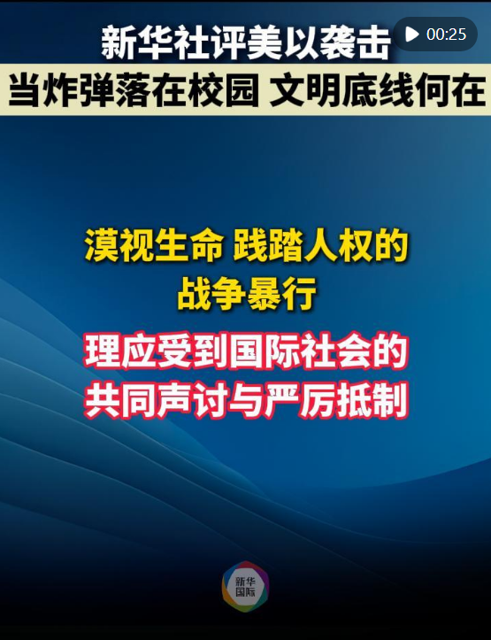 一个个平民生命的消逝,背后是一个个支离破碎的家庭,是无数父母和家人撕心裂肺的悲痛。漠视生命、践踏人权的战争暴行,理应受到国际社会的共同声讨与严厉抵制。联合国儿童基金会对伊朗学校遭袭表示关切,强调“以平民和民用目标(包括学校)为攻击目标违反了国际法”。