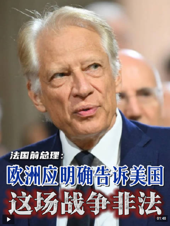 德维尔潘强调,欧洲应该硬气一些,就像2003年美国发动伊拉克战争时时任法国总统希拉克那样,明确表示反对,告诉美国这样的战争是非法的、不正当的——而不是继续对美国抱有幻想,跑到白宫去恳求美国总统特朗普。