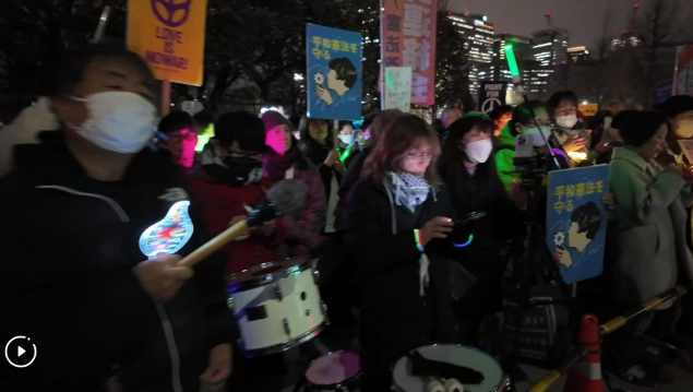 Nearly 10,000 people gathered in central Tokyo on Tuesday night to protest the dangerous policies pursued by the government of Japanese Prime Minister Sanae Takaichi, including the deployment of missiles and the push to ease lethal arms exports.