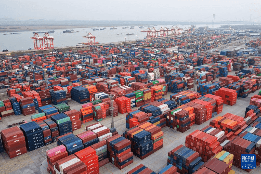 3月10日拍摄的江苏省港口集团南京港龙潭集装箱码头(无人机照片)。新华社发(方东旭摄)
