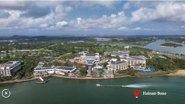 An aerial drone photo taken on March 19, 2026 shows the Boao Forum for Asia (BFA) International Conference Center on the Dongyu Island in Boao Town of Qionghai City, south China's Hainan Province. (Xinhua/Yang Guanyu)■