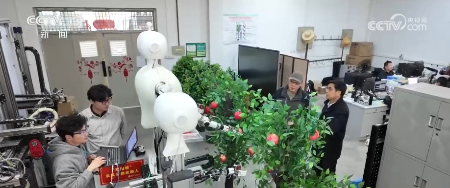 陕西是果业大省,仅苹果产量就占全国的约四分之一。但很多果园都分布在丘陵和沟壑地带,大型机械无法进入,人工成本很高。2026年,当地加快研发具身智能等先进装备,提升果园采收效率。
