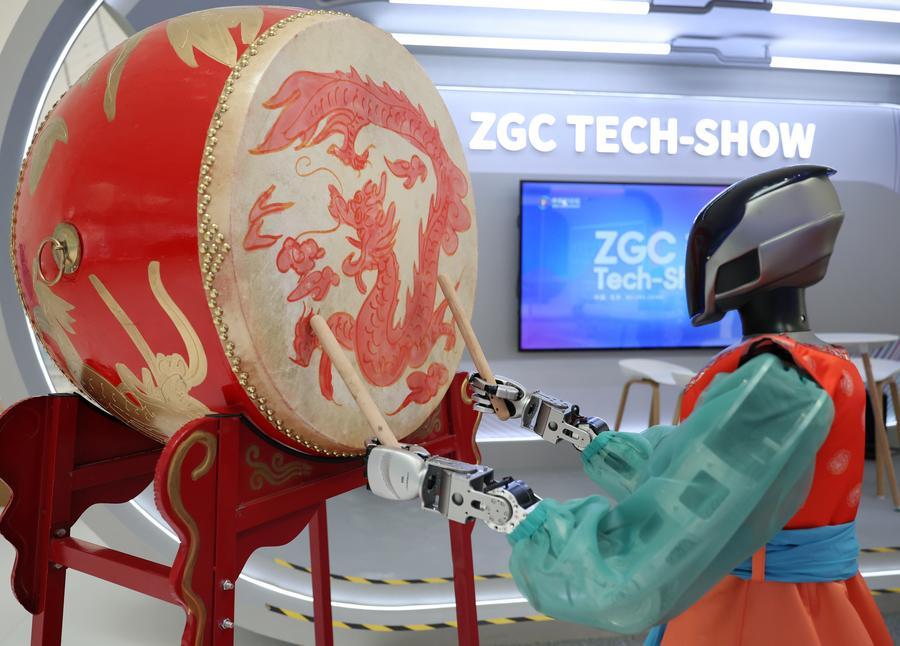 A robot stages a performance at the Zhongguancun International Innovation Center in Beijing, capital of China, March 24, 2026. (Xinhua/Zhang Chenlin)